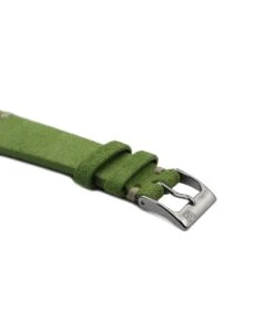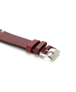 Rembordiertes und stark bombiertes Rindleder-Uhrband mit Lochmuster im „Retro-Look“ mit hautfreundlichem Futterleder und Edelstahl-Dornschließe.