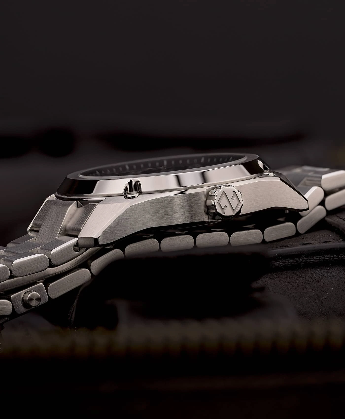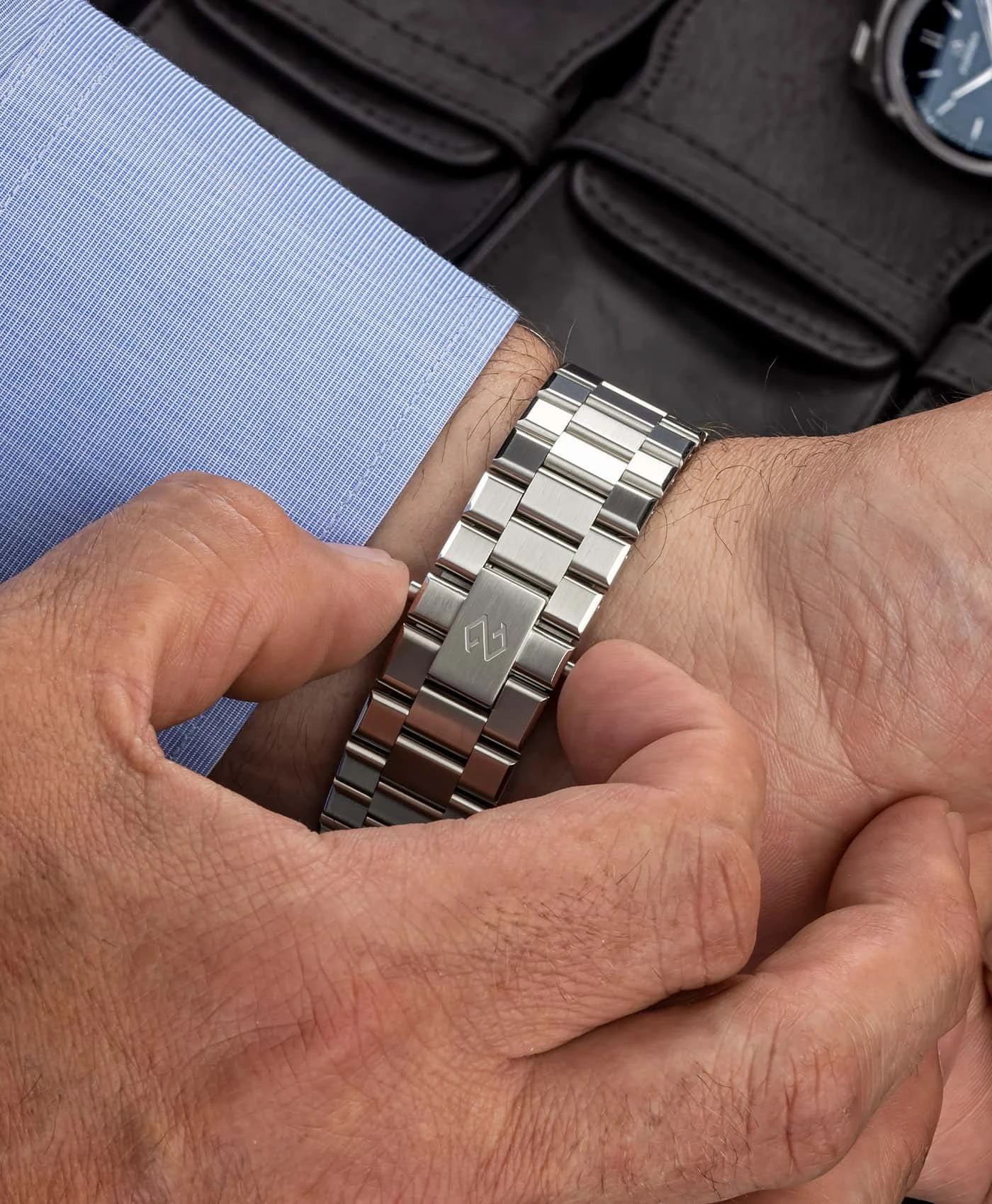 Armband: 316L Edelstahlarmband mit eigens entwickeltem Quick Release System und Mikroverlängerungsfunktion (Keramikkugeln)