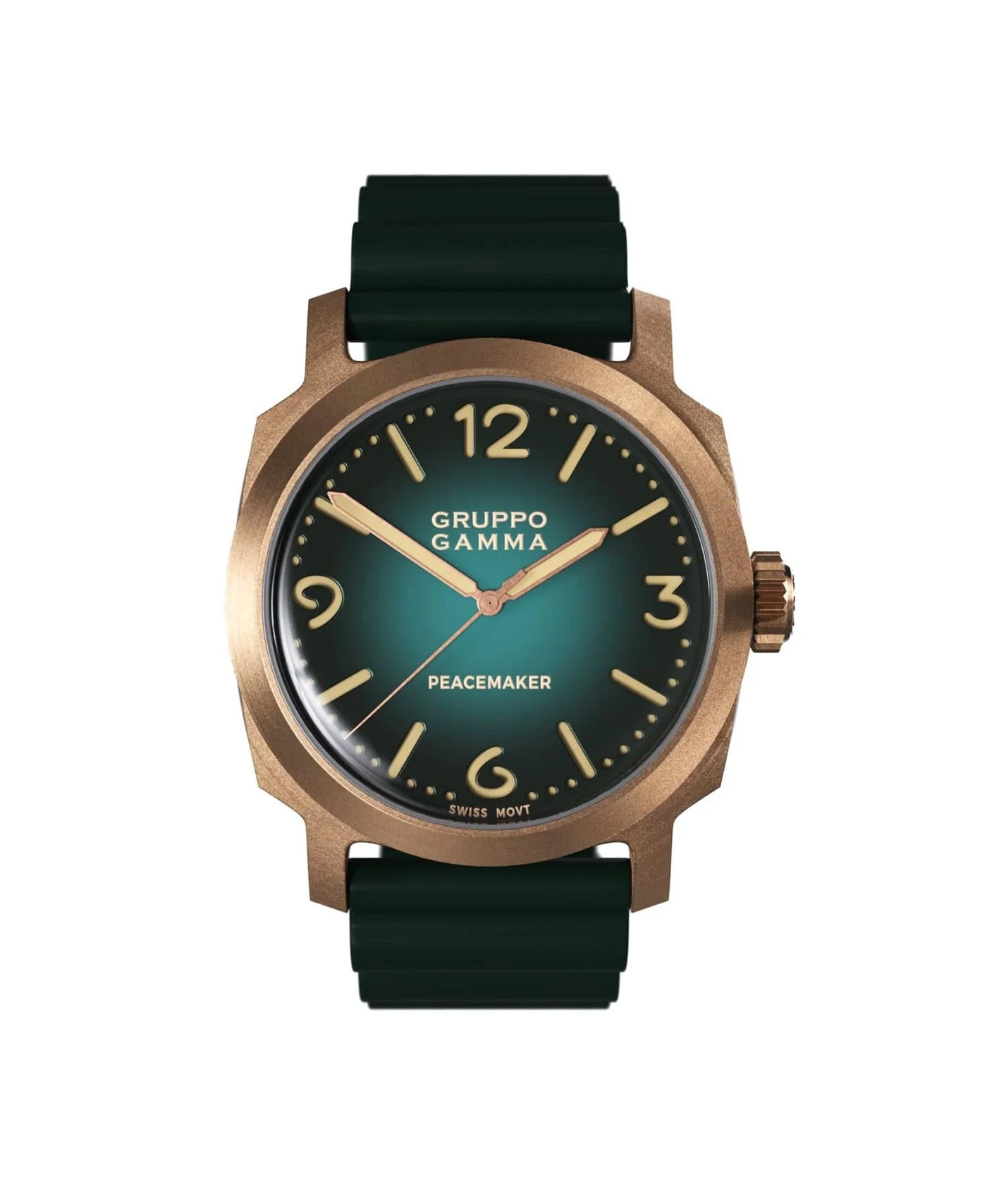 Das Retrodesign von Gruppo Gamma vermittelt militärische und maritime Elemente. Schließlich ist der Hauptsitz in Singapur, einem Land, das von Wasser umgeben ist und wo viele Landsleute im Militär dienen. Dennoch werden beste Schweizer Uhrwerke wie das ETA und STP Kaliber verbaut. Die Modelle Vanguard, Peacemaker und Chrononaut sind zwischen 200 und 300 Meter wasserdicht und äußerst hochwertig verarbeitet.