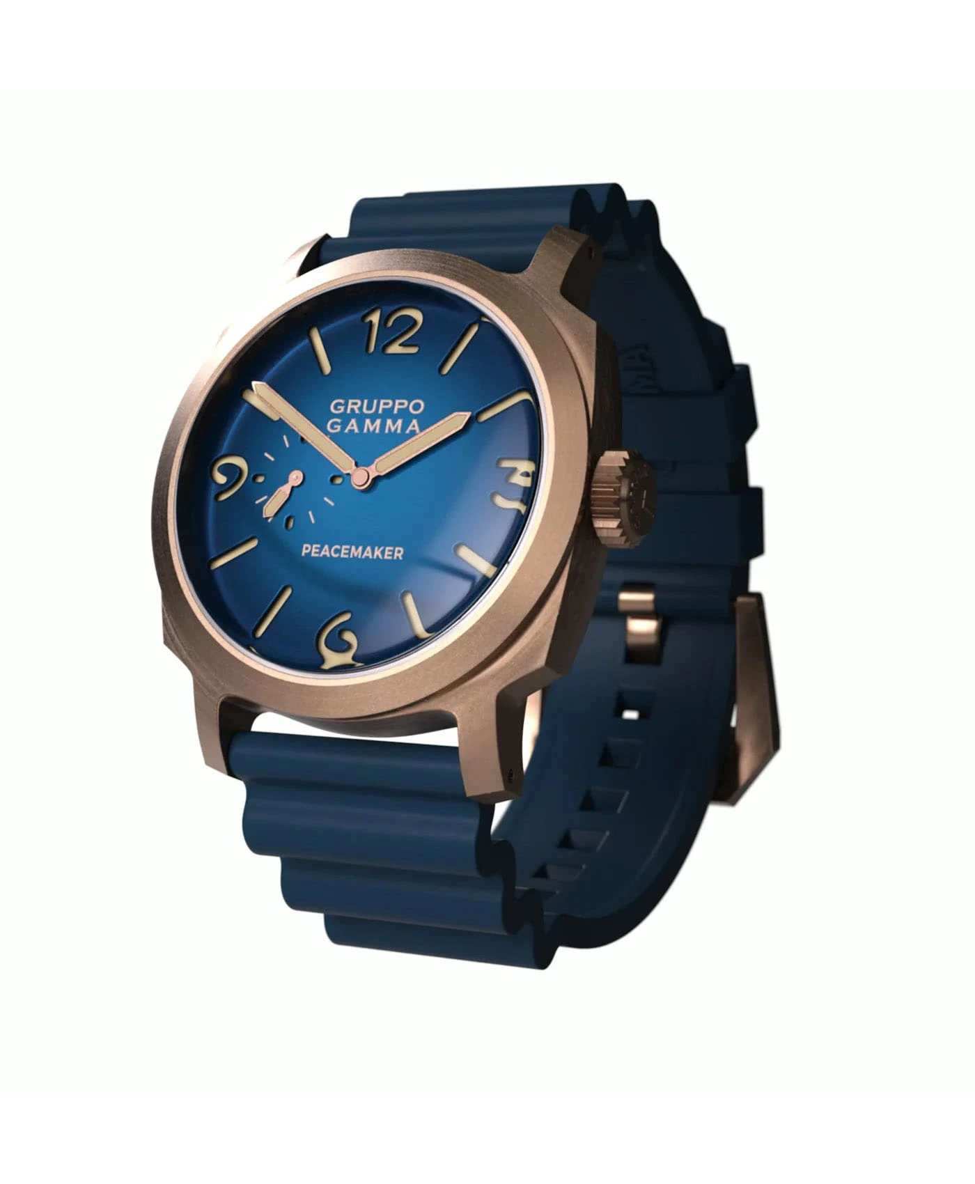 Das Retrodesign von Gruppo Gamma vermittelt militärische und maritime Elemente. Schließlich ist der Hauptsitz in Singapur, einem Land, das von Wasser umgeben ist und wo viele Landsleute im Militär dienen. Dennoch werden beste Schweizer Uhrwerke wie das ETA und STP Kaliber verbaut. Die Modelle Vanguard, Peacemaker und Chrononaut sind zwischen 200 und 300 Meter wasserdicht und äußerst hochwertig verarbeitet.