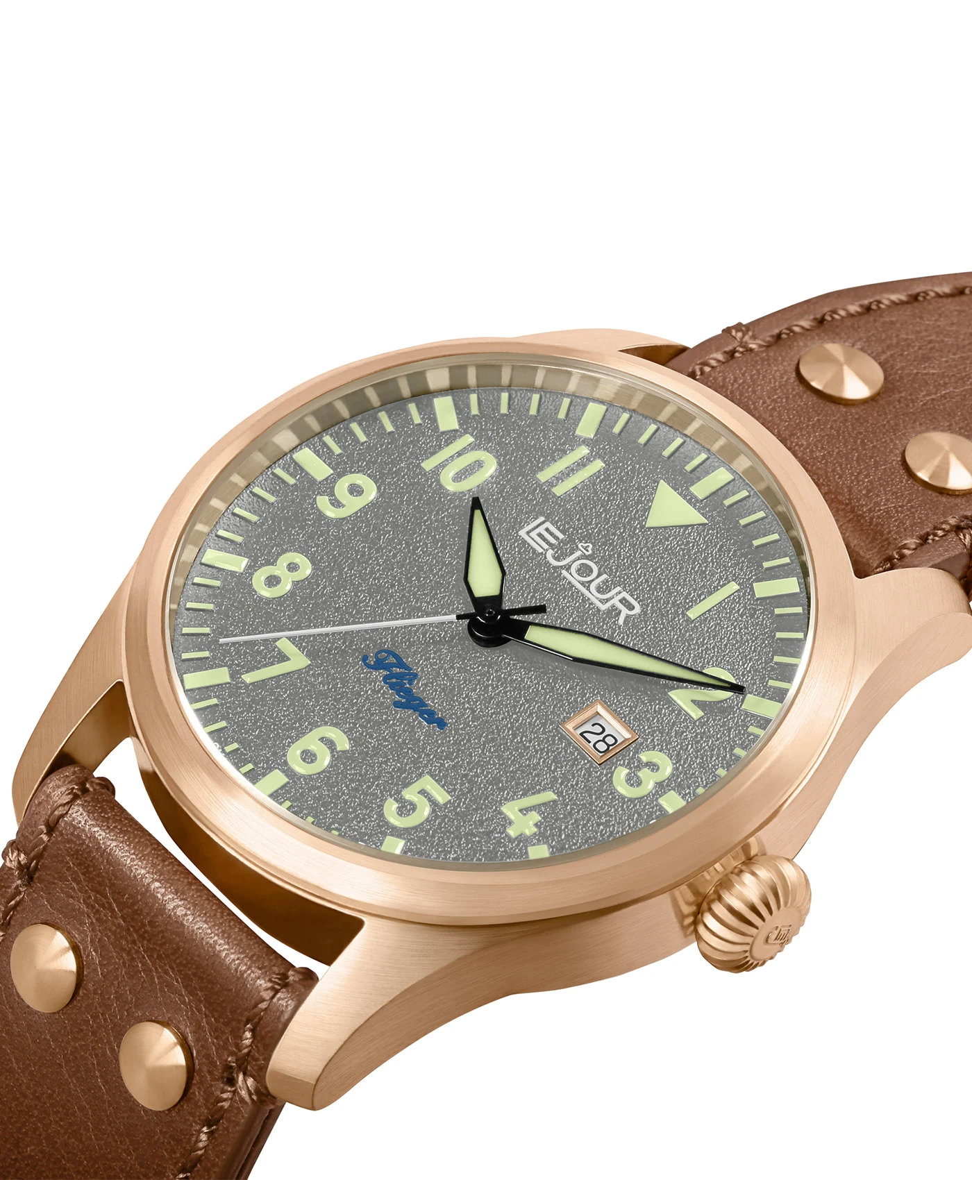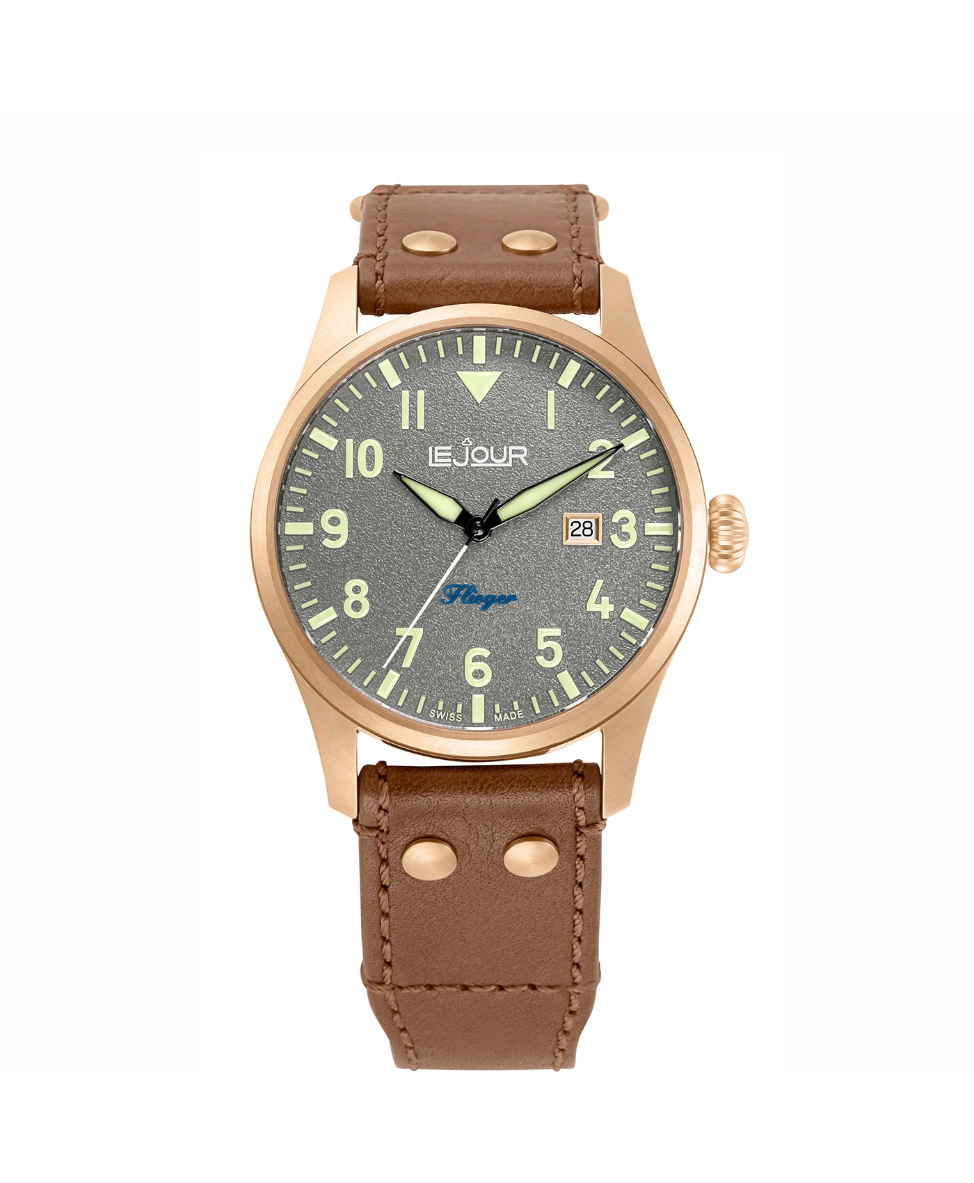 Mit der neuen Flieger Kollektion bietet Le Jour bietet ein traditionelles Toolwatch-Design, welches in der Zeit des Zweiten Weltkrieges für Uhren von Kampfflugzeugpiloten verwendet wurde. Es symbolisiert die Revolution der Umstellung auf Armbanduhren von traditionellen (Beobachtungs-) Taschenuhren von Soldaten. Pilotenuhren zeichnen sich durch ihre besonders gute Leserlichkeit aus, welches sich im Zifferblattdesign und der Größe widerspiegelt. Dies war für die Kampfpiloten, die ihre Hände bei wenig Bewegungsfreiheit stets an ihren Steuerelementen haben mussten, von besonderer Wichtigkeit.