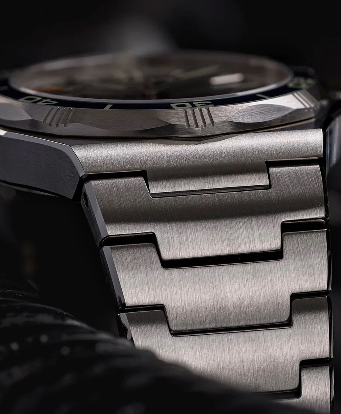 Um den Timer zu verwenden, stellen Sie den Minutenzeiger zu Beginn Ihres Tauchgangs auf 12 und verwenden Sie ihn zur Zeitmessung Ihrer Unterwassererkundung. Wenn es Zeit für Ihren Dekompressionsstopp ist, können Sie dessen Dauer mithilfe der drehbaren Lünette messen. Richten Sie die Ziffer auf der Lünette, die Ihrer erforderlichen Dekompressionszeit entspricht (z. B. Ziffer 20 für einen 20-minütigen Stopp), mit dem Minutenzeiger aus. Sobald der Minutenzeiger den Nullpunkt erreicht (angezeigt durch die leuchtende 12-Uhr-Markierung auf der Lünette), können Sie sicher zur Oberfläche zurückkehren.