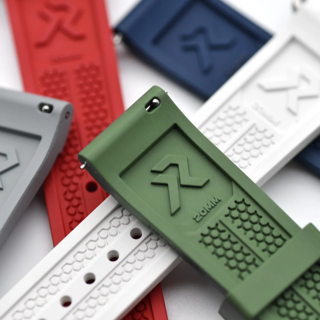 Das RZE-Premium-FKM-Band wurde nach höchsten Standards entwickelt, um den härtesten Bedingungen standzuhalten. Das HexaFlex-Band bietet optimalen Komfort und maximale Haltbarkeit, ist aus 100 % Fluorkautschuk geformt und hält Chemikalien und extremen Temperaturen stand. Ausgestattet mit UltraHex-beschichteten Titanbeschlägen ist das RZE-Premium-Kautschukband mit jeder Uhr mit einer Anstoßbreite von 20 mm kompatibel. Fügen Sie diesen Gurt zu Ihrer Ausrüstung für all die nassen, schlammigen Bedingungen hinzu, denen Sie bei Ihren Abenteuern begegnen könnten.