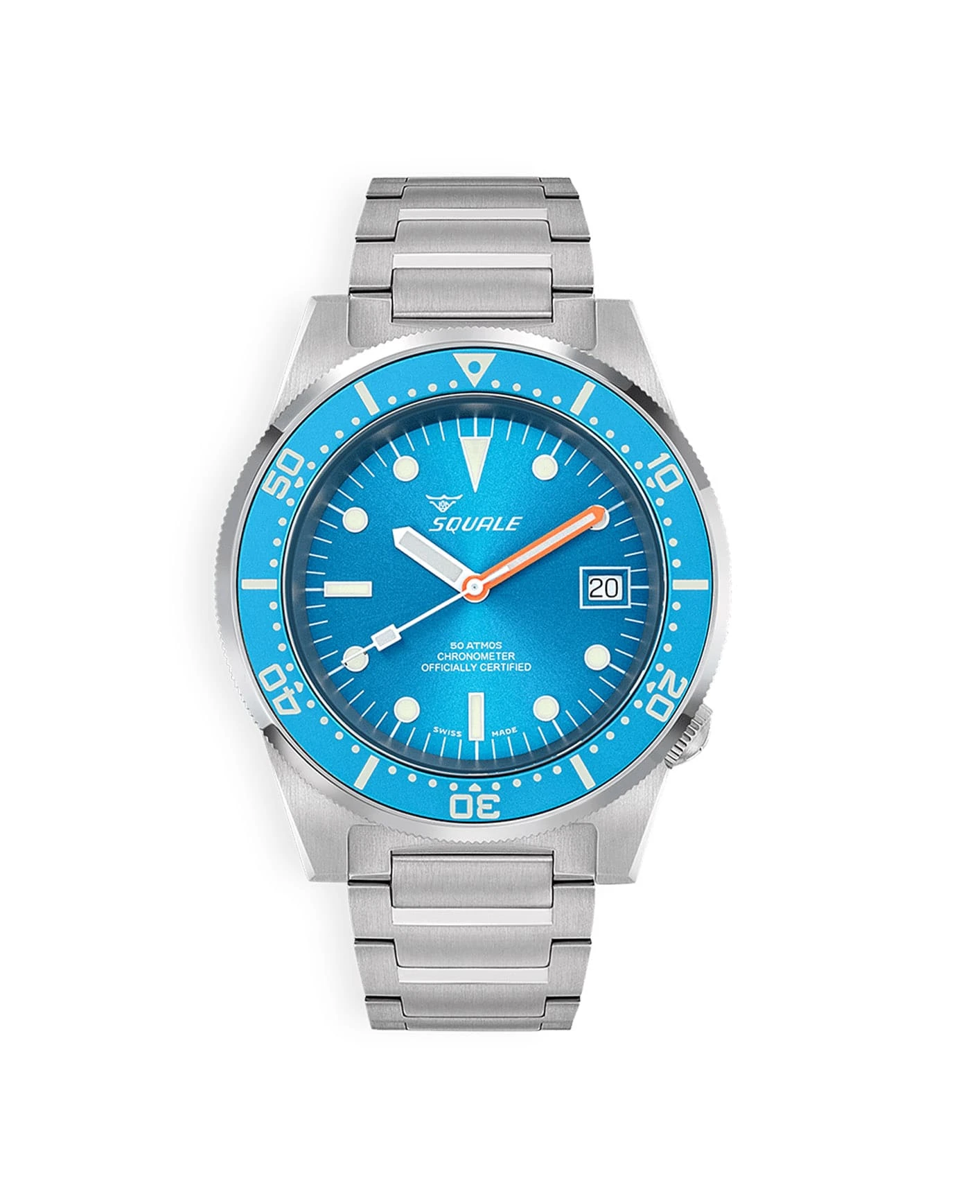 Die große Schweizer Tradition der Präzisionsuhrmacherei, verbunden mit der Liebe zum Meer und zum Tauchen, waren die beiden Faktoren, die C. Von Büren dazu veranlassten, sich ausschließlich auf den Bau professioneller Taucheruhren aus den frühen 50er Jahren zu konzentrieren. Anfänglich erschien die Marke “Squale” auf den Koffern von Schweizer Uhren verschiedener Marken, als Zeichen der guten Herstellung und eines Qualitätszeichens. In den 1960er Jahren begann Von Büren Uhren zu produzieren, die auch die Squale-Markierung auf ihren Zifferblättern aufwiesen. Damit begann die Institutions- und Handelsgeschichte der Marke. Die ersten sportlichen Erfolge, wie der 1968 in Kuba gewonnene Welttauchtitel, waren mit den Namen von Produkten verbunden, die so legendär waren wie die Medium Master 50 atm. In den 70er Jahren entstand die erste “1000 Meter” Uhr mit Glas auf flexibler Montage und aufklappbarer Lünette, die sich in beide Richtungen drehen ließ. Squale produzierte weitherin für andere Marken und begann, das Elitekorps einer großen Anzahl von Streitkräften zu beliefern, einschließlich der Fallschirmspringer der italienischen Folgore-Brigade und der Tauchkompanie der italienischen Marine. All dies hat Squale zu einem Synonym für Qualität und international zur Referenzmarke für Taucheruhren gemacht, ein Status, den Squale seit mehreren Jahrzehnten genießt.