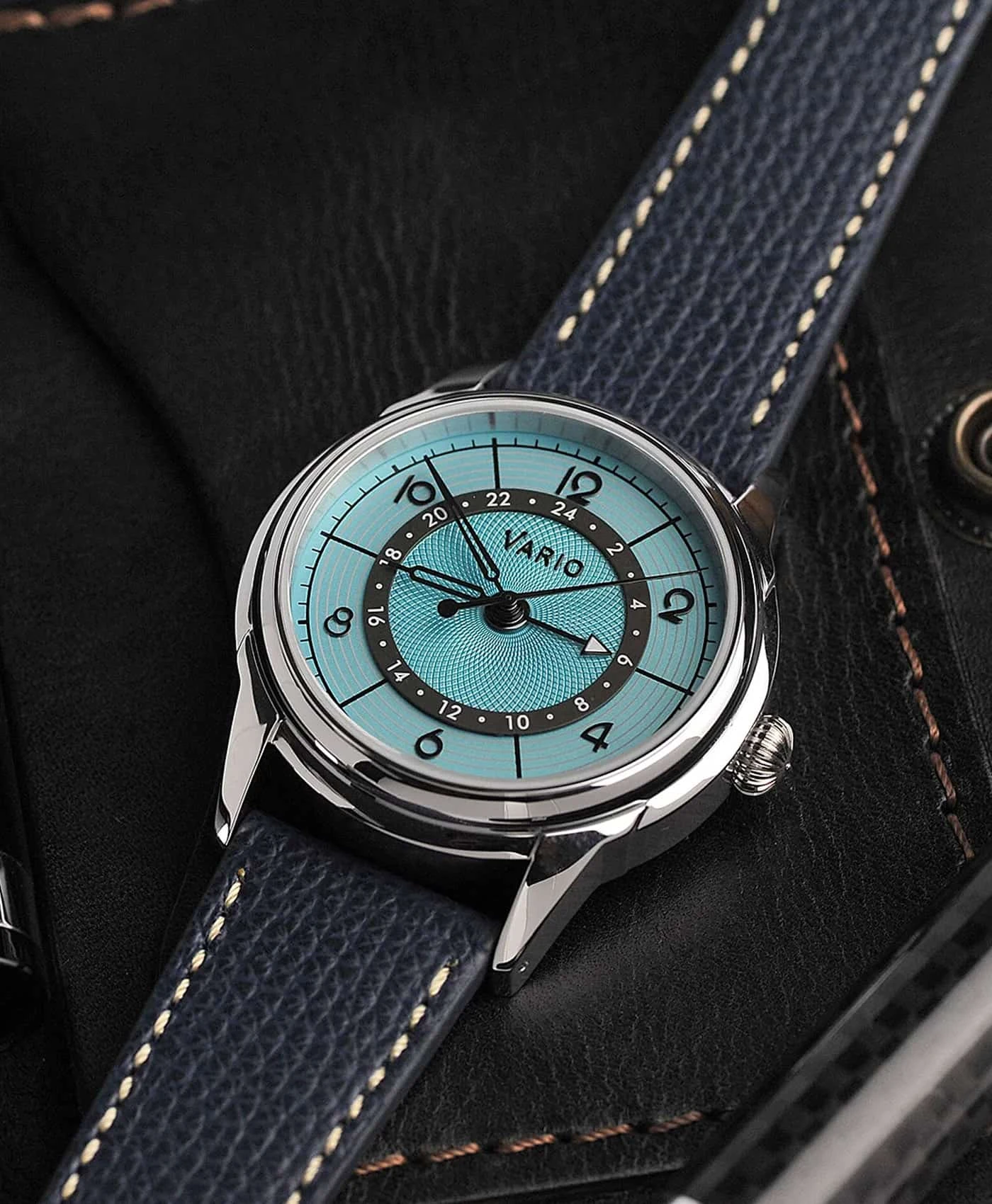 Vario Empire ist Ihr Tor zu einer der größten Epochen des Art-Déco-Designs. Jede sorgfältig gestaltete Traveller’s GMT-Uhr besteht vollständig aus maßgeschneiderten Teilen und beherbergt Ihr Miyota 9075 True GMT-Automatikwerk und passt sich mit ihrem weichen und geschmeidigen italienischen Lederarmband direkt aus der Verpackung an Ihr Handgelenk an.