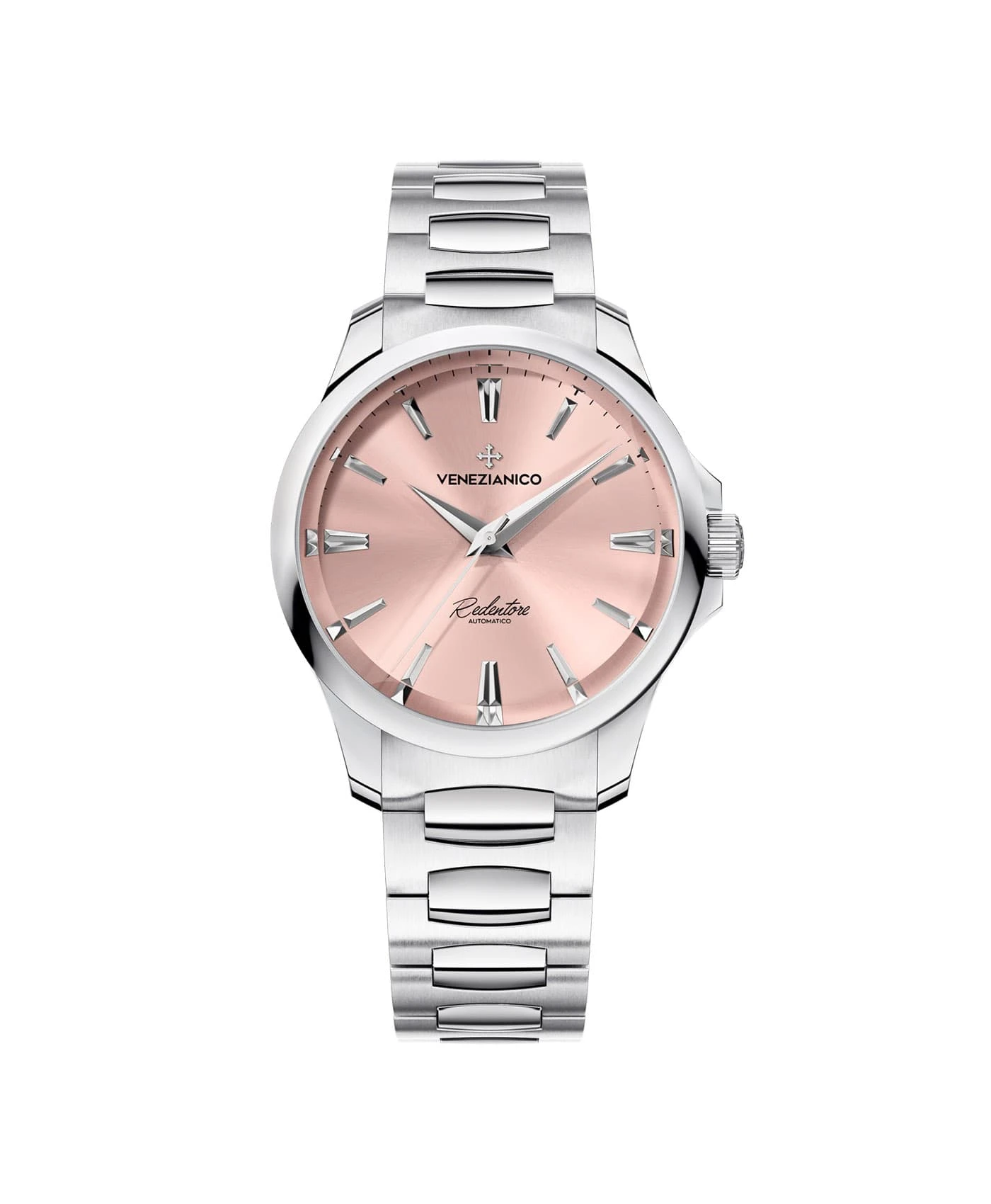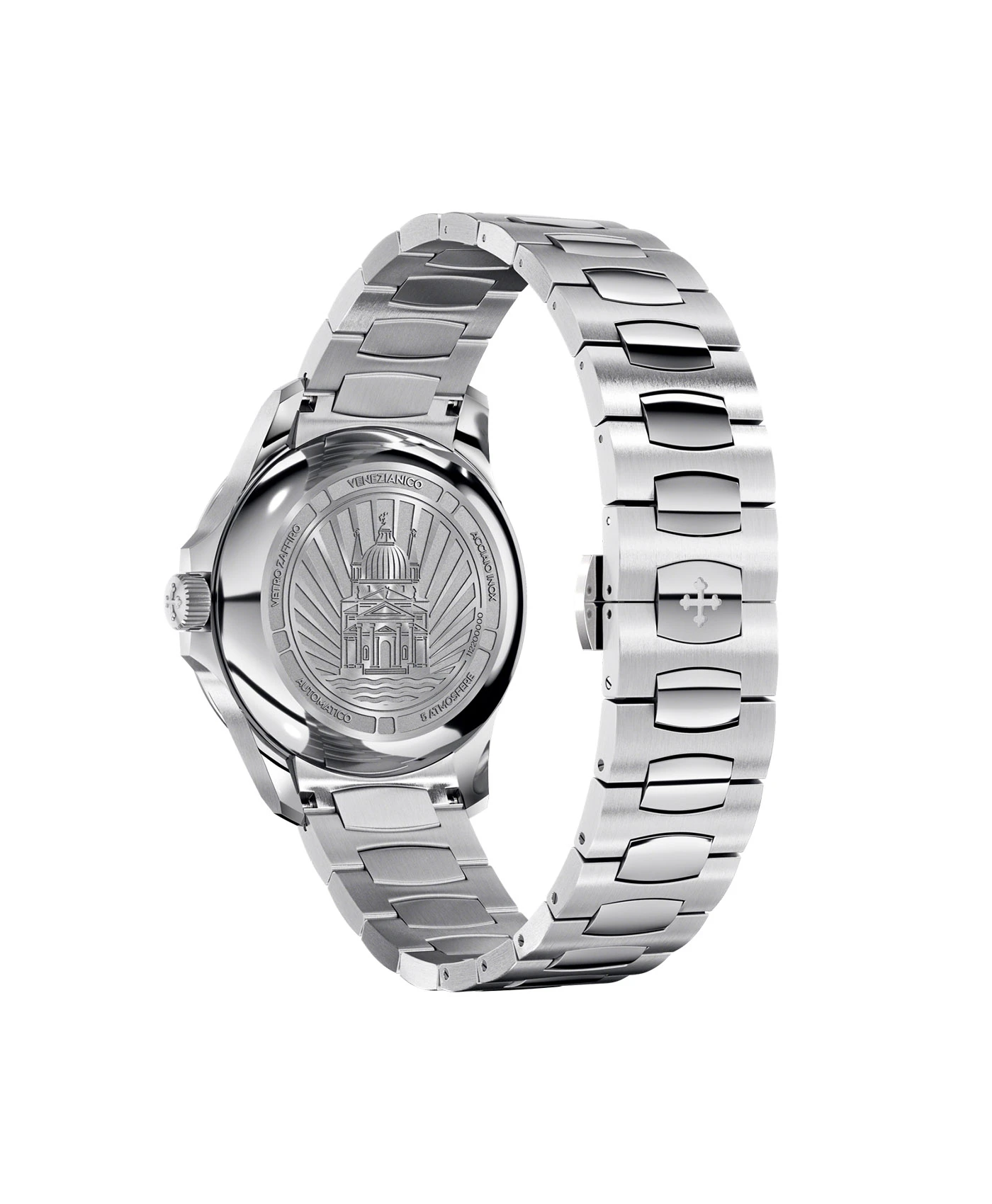 Das Design dieser Uhr ist von der Basilica del Redentore inspiriert, dem Meisterwerk des venezianischen Architekten Andrea Palladio, der als Vater des neoklassizistischen Stils bekannt ist. Die Ausgewogenheit seiner Formen und Proportionen verleiht dem Gehäuse ein elegantes und zeitgemäßes Aussehen und macht es zu einem äußerst vielseitigen Modell.