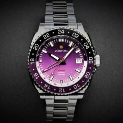 DIE VESUVIATE VOLARE ist eine superrobuste GMT-Werkzeuguhr mit japanischem Automatikwerk. Es wird mit einem 316L-Edelstahlgehäuse und -armband mit superharter Oberfläche/einsatzgehärteter thermochemischer Behandlung geliefert, die auf 1.100 HV gehärtet wurde.