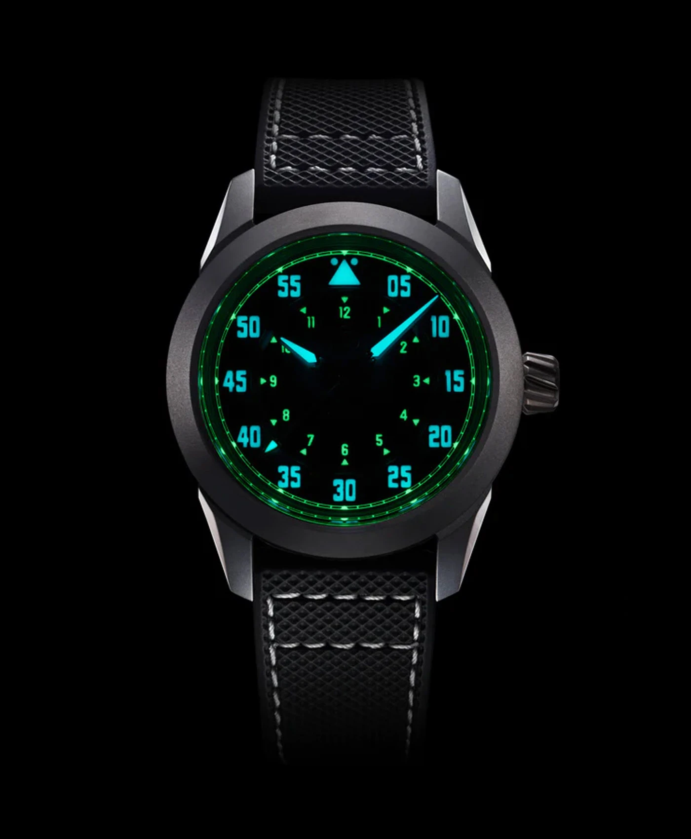 Die erste Eagle war eine Fliegeruhr, die 2016 auf den Markt kam und ihresgleichen suchte. Wir freuen uns, einen Nachfolger vorstellen zu können, der elegant ist und dennoch mit den neuesten Technologien in Bezug auf Materialien und Fertigung ausgestattet ist. Dadurch wird sichergestellt, dass der Eagle den Strapazen sowohl im Cockpit als auch Ihren alltäglichen Abenteuern standhält. Das komplizierte mehrteilige Gehäusedesign der Eagle besteht aus leichtem Titan, das auf 1200 HV gehärtet wurde. Ein wabenförmig graviertes Mittelgehäuse ist von einer skelettierten Bandanstoßstruktur umgeben. Diese komplexe Konstruktion und die schlanken Außenflächen sind eine Hommage an die neuesten Kampfjets. Das erste Eagle-Design verfügte über das „Typ A“-Zifferblatt und die Eagle 2 bietet etwas anderes mit dem „Typ B“-inspirierten Pilotenzifferblatt. Große, vollständig beleuchtete Ziffern bieten jederzeit eine hervorragende Lesbarkeit. Ein dickes, kastenförmiges Saphirglas vervollständigt diese Fliegeruhr, ähnlich wie die Kabinenhaube eines Cockpits.